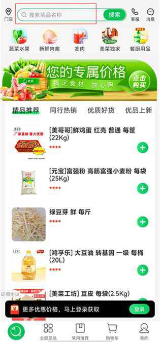 2、隨后用戶可以在上方的搜索框內(nèi)進(jìn)行所需購買菜類名稱的填寫;