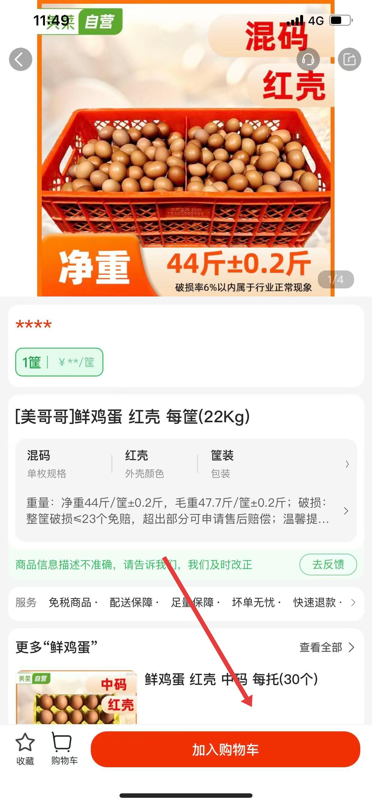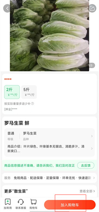 2、在商品詳情頁,確認(rèn)商品規(guī)格、重量等信息無誤后,點擊加入購物車。