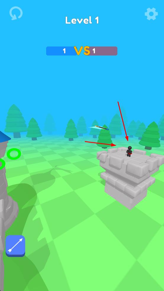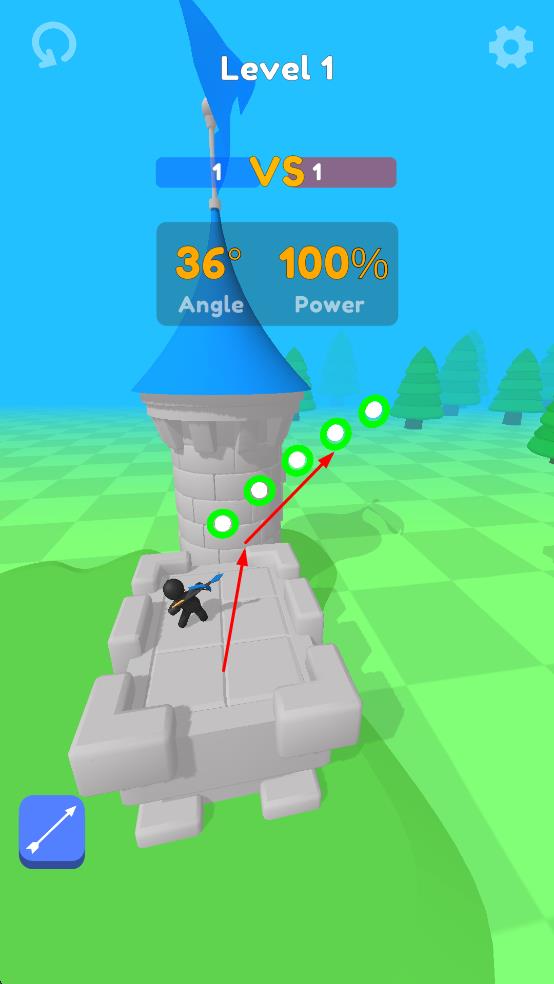 1、調(diào)整角度與力量,發(fā)射武器攻擊敵方城堡上的角色,開(kāi)啟對(duì)戰(zhàn)進(jìn)程。