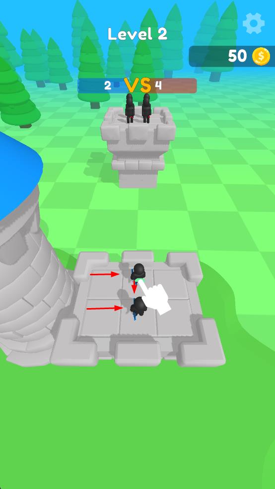 1、拖拽融合升級(jí)射手:進(jìn)入關(guān)卡后,玩家通過(guò)單指拖拽將場(chǎng)上相同等級(jí)的弓箭手移動(dòng)到一起,完成融合升級(jí),生成屬性更強(qiáng)的高階弓箭手,升級(jí)后的射手能提升防御能力。