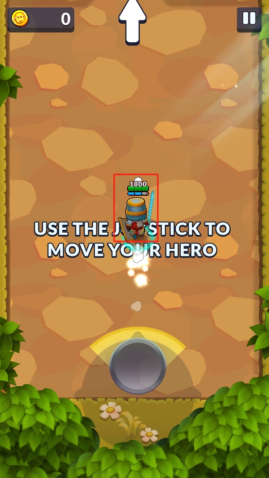 1、進(jìn)入作品后,我們操控虛擬搖桿移動(dòng)英雄,沿著箭頭方向前進(jìn),熟悉移動(dòng)操作,為后續(xù)戰(zhàn)斗做準(zhǔn)備。