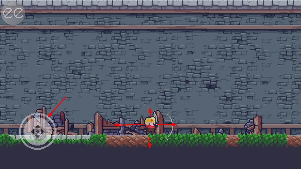 1、操控左側搖桿移動角色,點擊跳躍鍵跨越障礙,長按實現(xiàn)長跳,探索廢棄城墻場景。