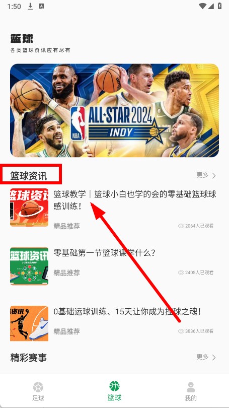 2、在籃球資訊板塊,選擇資訊并點(diǎn)擊。