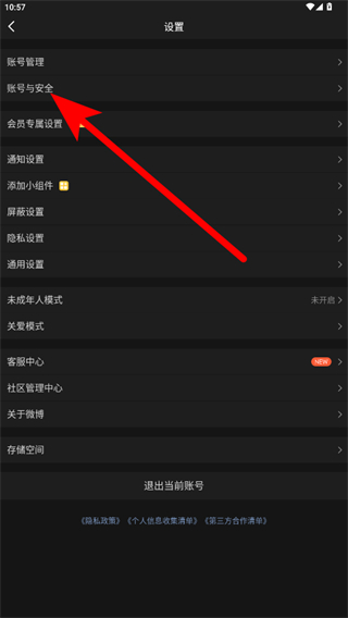 3.進(jìn)入設(shè)置界面后,點(diǎn)擊賬號(hào)與安全選項(xiàng)。
