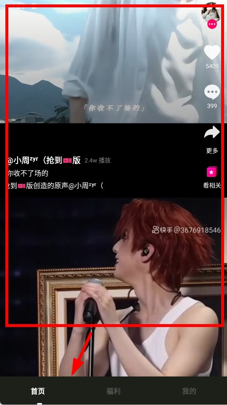 2、直接觀看當(dāng)前展示的短視頻,向上滑動屏幕,能切換播放下一條短視頻。