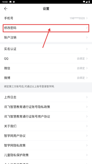 3、在設(shè)置頁面,點(diǎn)擊修改密碼選項(xiàng),進(jìn)入修改密碼頁面。