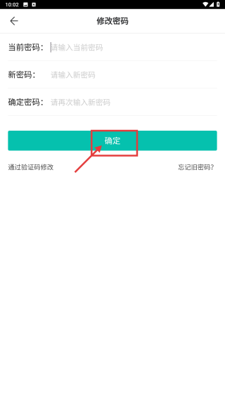 4、在修改密碼頁面,輸入當(dāng)前密碼、新密碼,再次輸入新密碼確認(rèn)后,點(diǎn)擊確定按鈕,完成密碼修改。