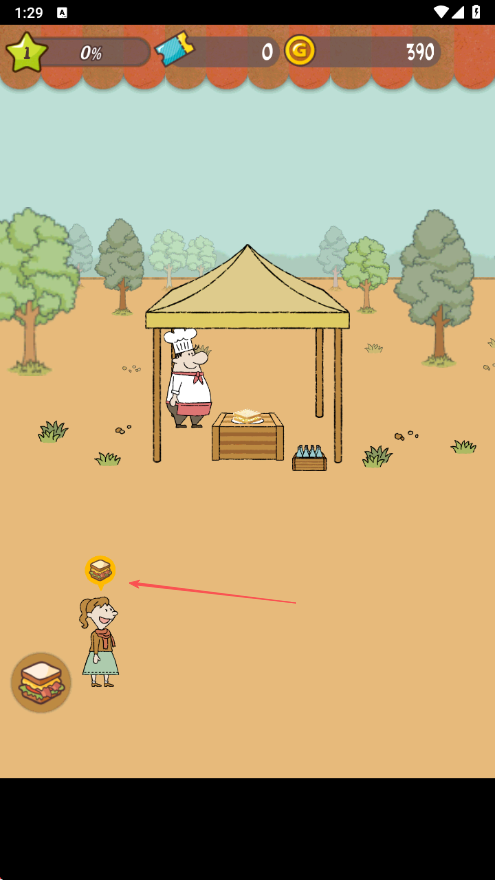 3、新顧客出現(xiàn)后,重復(fù)上述操作,引導(dǎo)顧客購(gòu)買三明治,持續(xù)積累金幣。