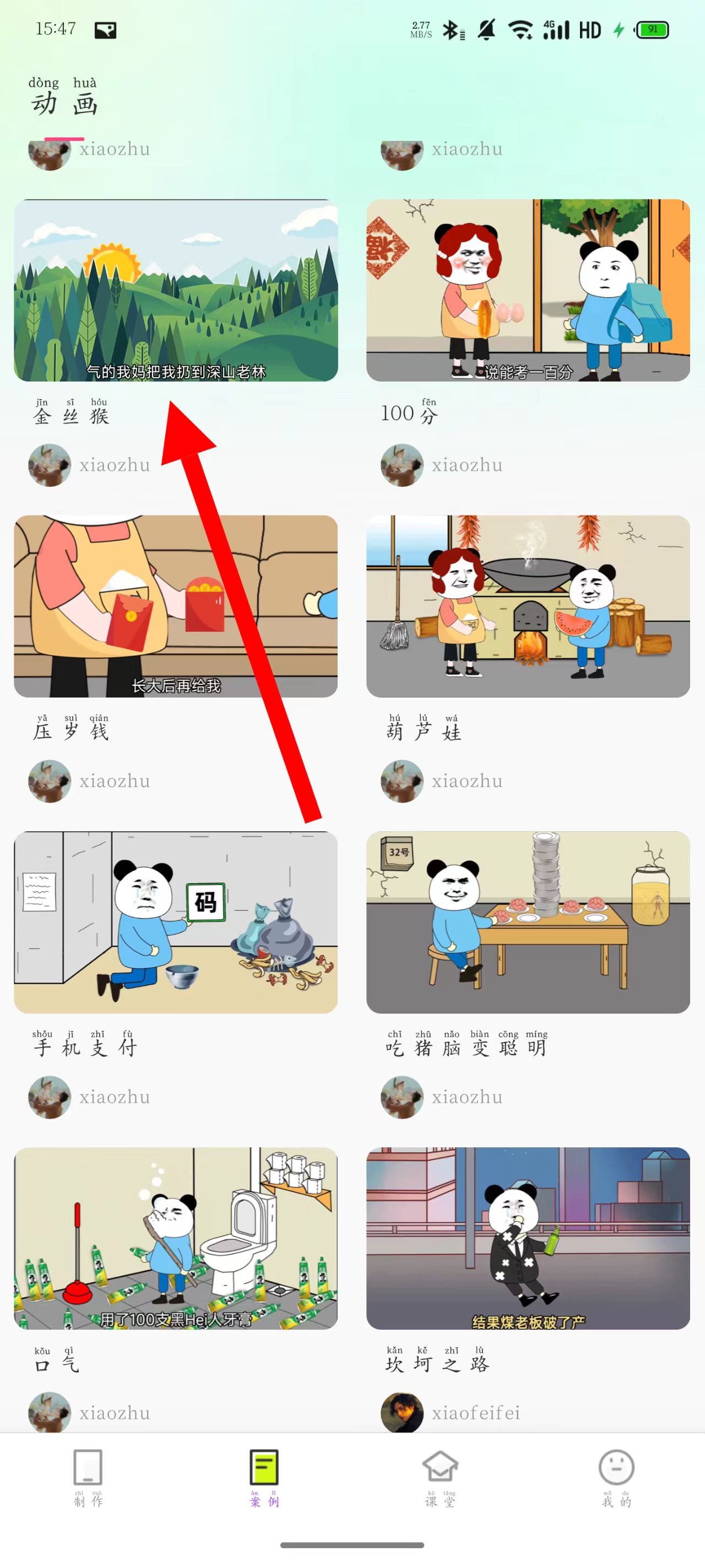 3、在案例頁面,選擇目標(biāo)動(dòng)畫案例并點(diǎn)擊。
