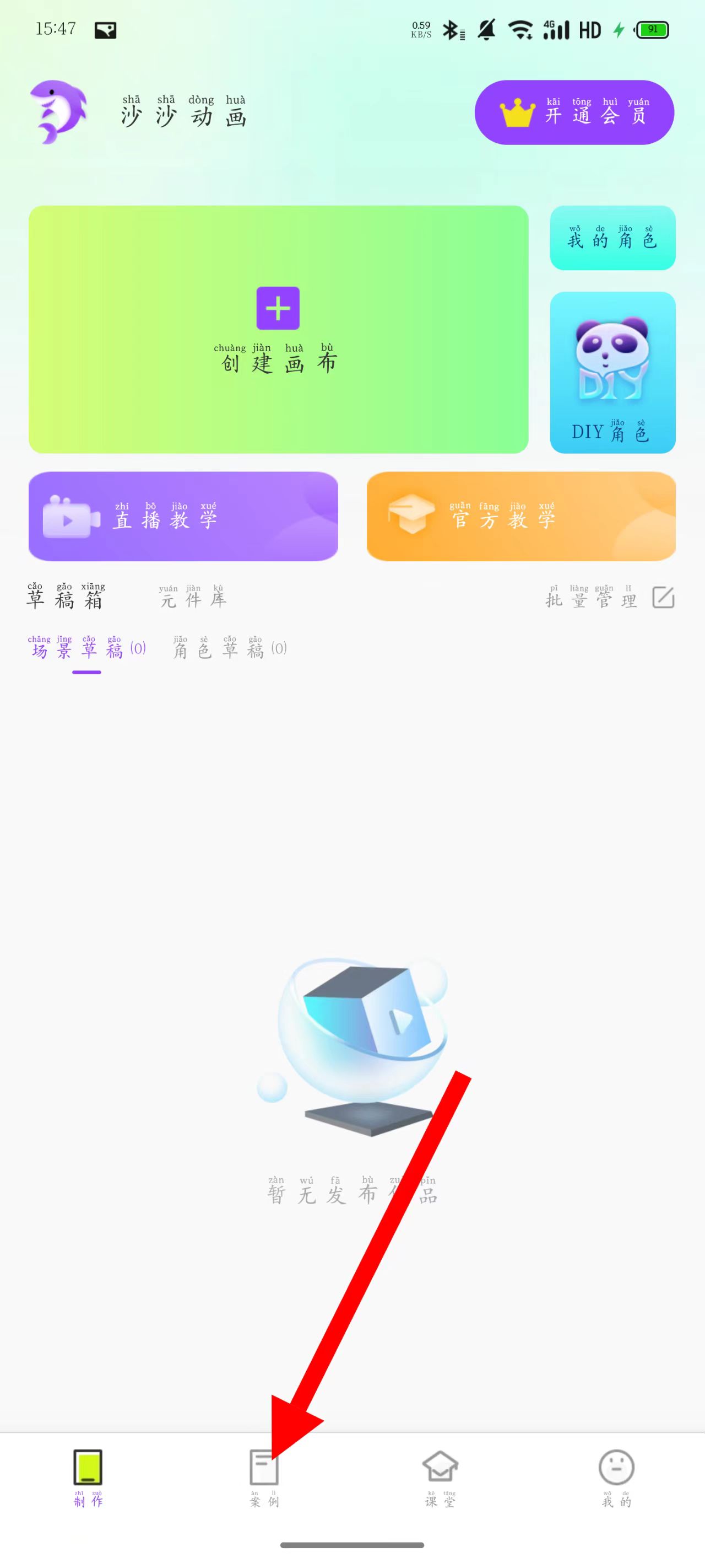 2、登錄后進(jìn)入主界面,點(diǎn)擊底部案例選項(xiàng)。