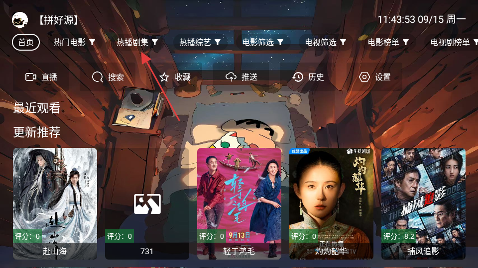 1、點(diǎn)擊頁(yè)面上方的熱播劇集選項(xiàng),進(jìn)入熱播劇集頁(yè)面。