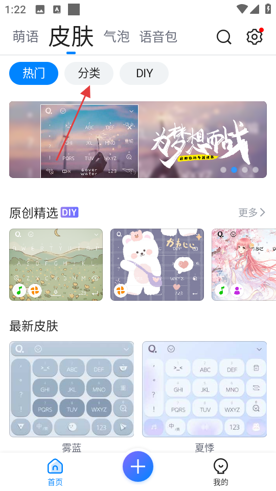 1、進(jìn)入QQ輸入法,在皮膚頁(yè)面,點(diǎn)擊分類(lèi)。