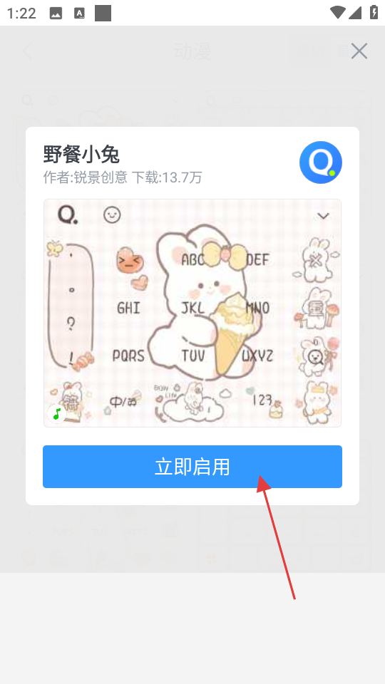 4、進(jìn)入野餐小兔皮膚詳情頁(yè),點(diǎn)擊立即啟用按鈕更換該皮膚。