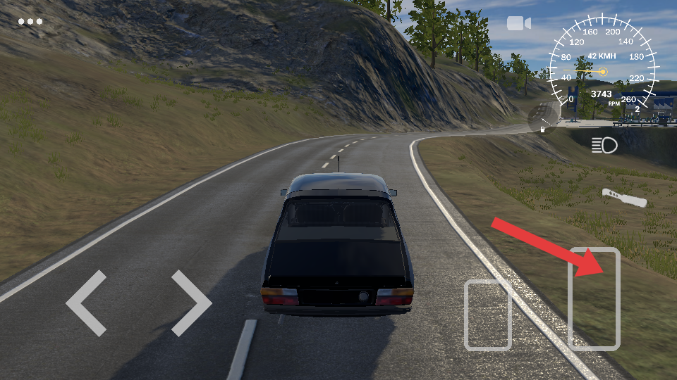 1、在公路行駛時,點擊箭頭指向的右側(cè)油門按鈕,可控制車輛加速前進,讓車輛在公路上保持合適的行駛速度,順利前行。