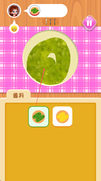 2、接著選擇醬料,根據(jù)顧客需求或界面提示,點(diǎn)擊對(duì)應(yīng)的醬料圖標(biāo),將醬料均勻涂抹在鋪好的面團(tuán)上。