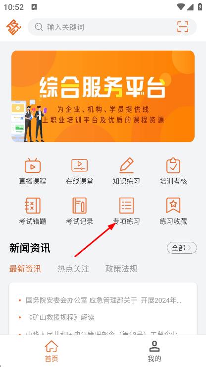 1、在綜合服務(wù)平臺首頁,點擊專項練習(xí),進入我的項目頁面。