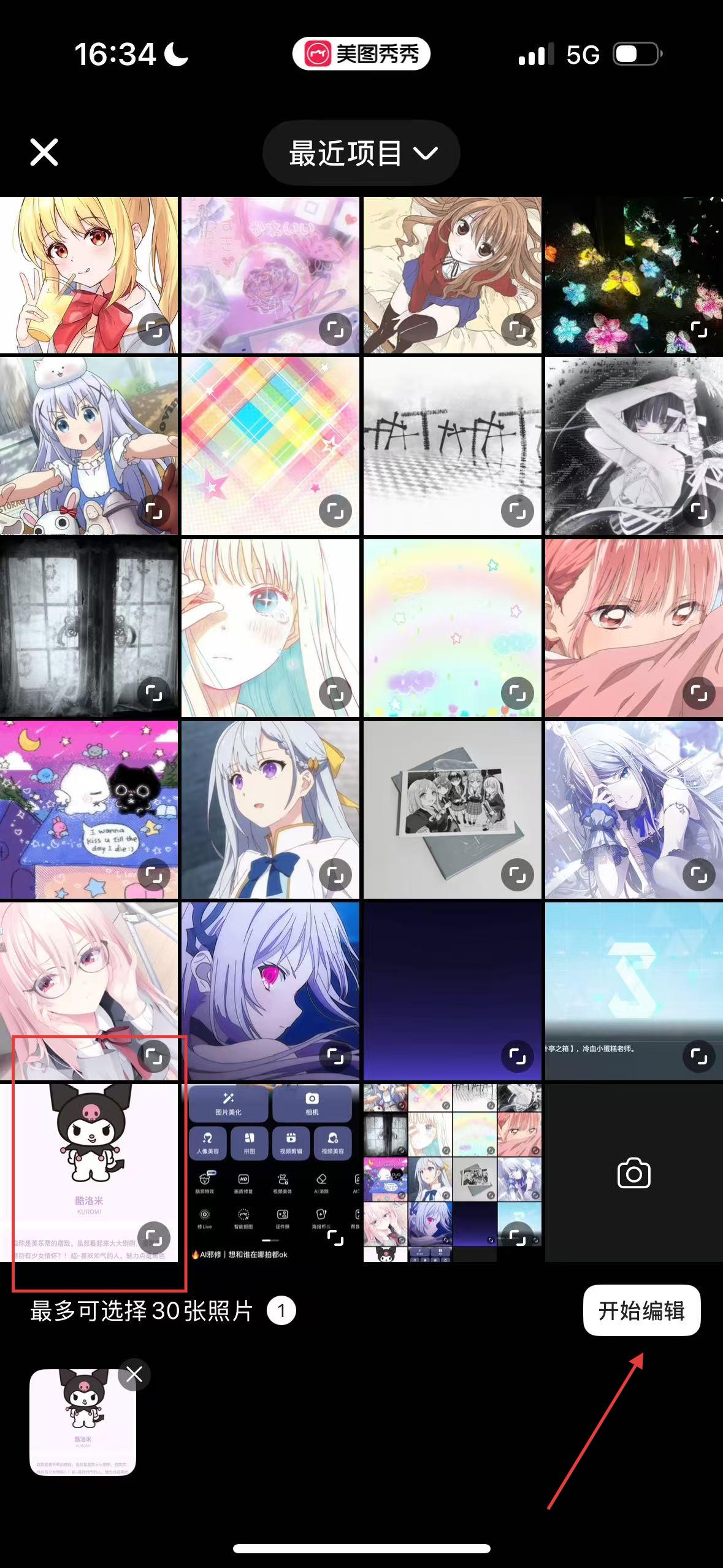 2、在圖片選擇頁面,選擇要摳圖的圖片,點(diǎn)擊開始編輯,進(jìn)入摳圖編輯頁面。