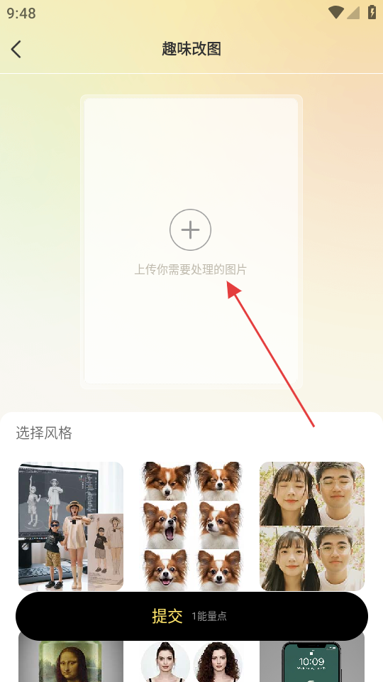 3、在趣味改圖頁(yè)面,點(diǎn)擊上傳你需要處理的圖片,進(jìn)入相機(jī)膠卷選擇頁(yè)面。