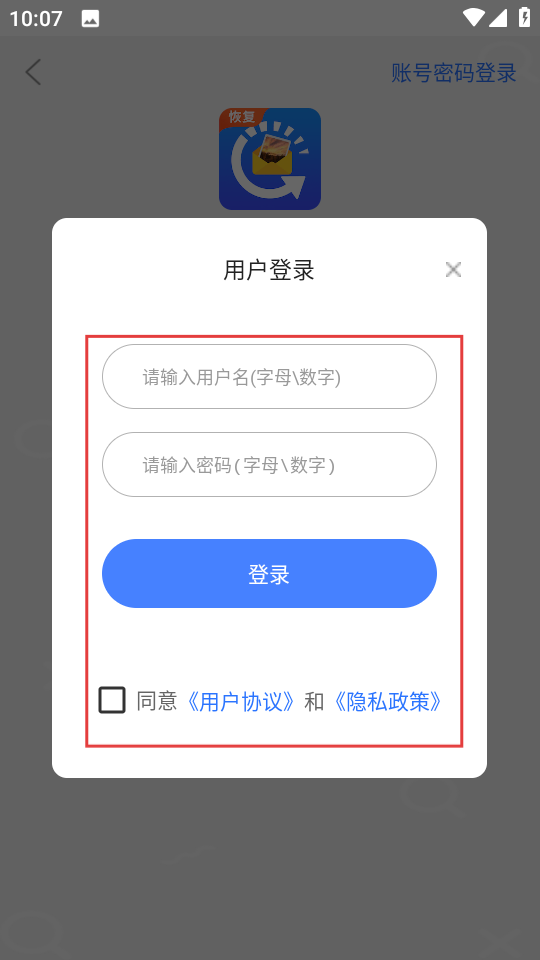 3、在登錄選擇頁面,點擊賬號密碼登錄,進(jìn)入用戶登錄頁面。