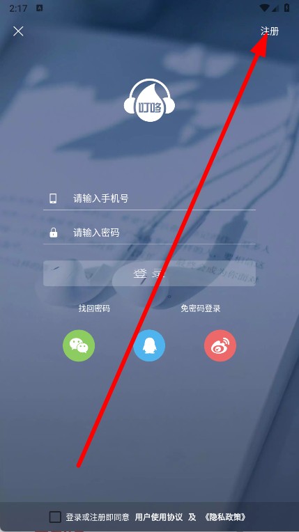 3、進(jìn)入登錄頁面后,點(diǎn)擊右上角注冊。