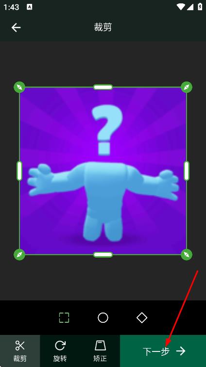 3、在裁剪頁面,裁剪好圖片后,點擊下一步,進入加框編輯頁面。