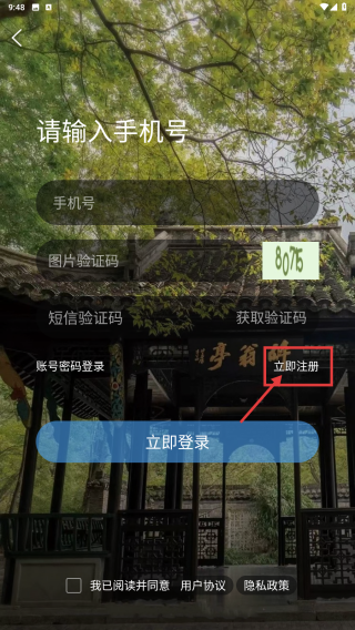 3、在賬號操作界面,點擊立即注冊選項,切換至注冊信息填寫頁。