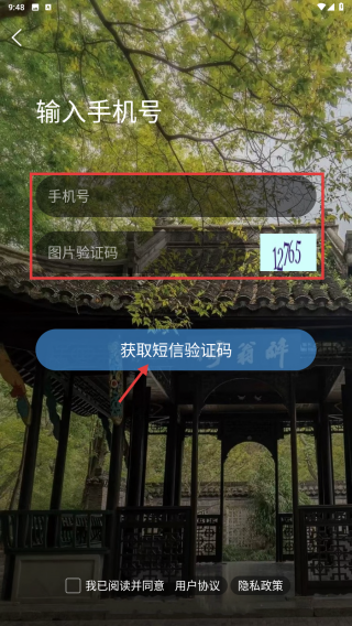 4、輸入手機號和圖片驗證碼,點擊獲取短信驗證碼按鈕,繼續(xù)注冊流程。