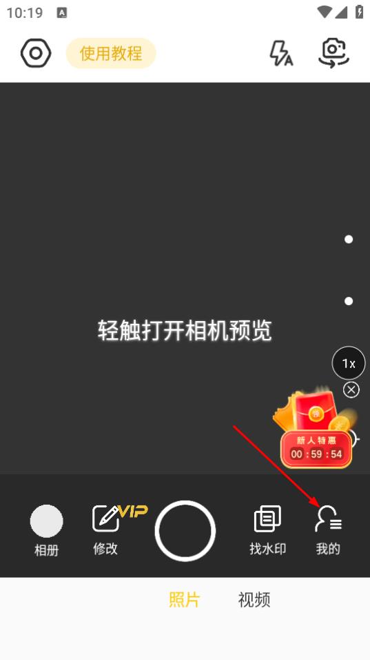 1、打開好修改水印相機,點擊頁面右下角的我的,進入個人頁面。
