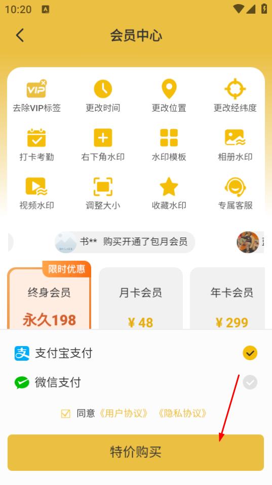 3、選擇會員類型和支付方式后,點擊特價購買,彈出綁定賬號提示框。