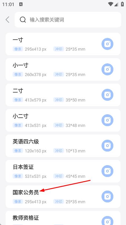 2、隨后選擇所需的證件照類型,進(jìn)入拍攝須知頁面。
