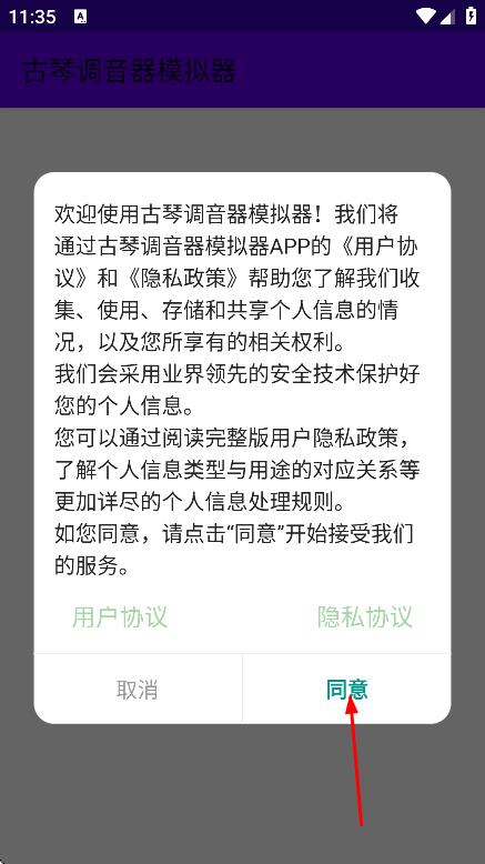 1、在用戶協(xié)議和隱私政策彈窗中,點擊同意,進入應用。