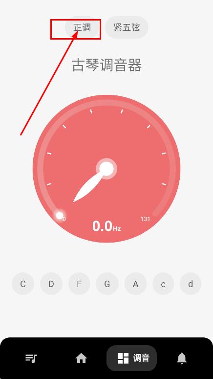 3、在調音頁面,選擇正調模式,準備進行古琴調音。