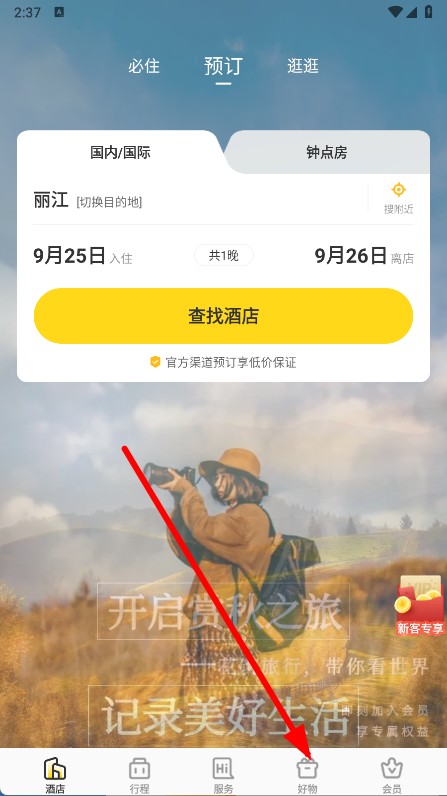 1、打開APP,點擊底部導(dǎo)航欄中的好物選項。