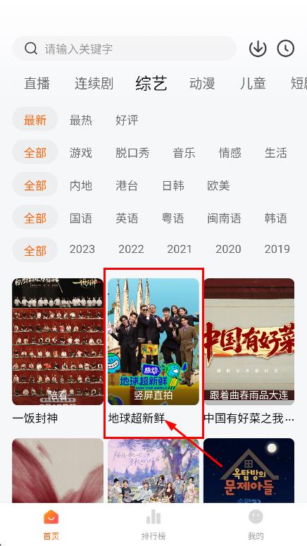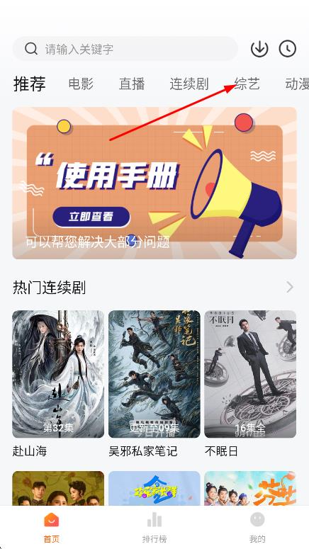 1、在首頁,可以點擊綜藝,進(jìn)入綜藝頁面。