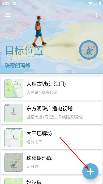 1、在目標(biāo)位置頁面,點擊右下角+,進(jìn)入地圖搜索頁面。