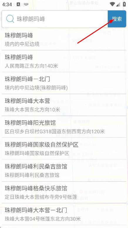 3、輸入珠穆朗瑪峰后,點擊搜索,查看搜索結(jié)果。