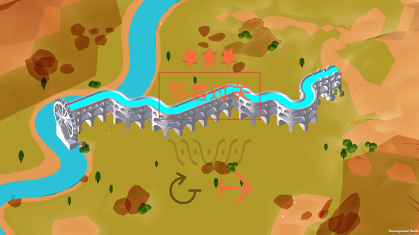 4、調(diào)整最右側(cè)的水道部件,使其與前面的水道完美銜接,讓水流最終能順利通過所有水道到達目標(biāo)區(qū)域,完成后即可看到水流成功流通,頁面顯示恭喜過關(guān)和三星評價。