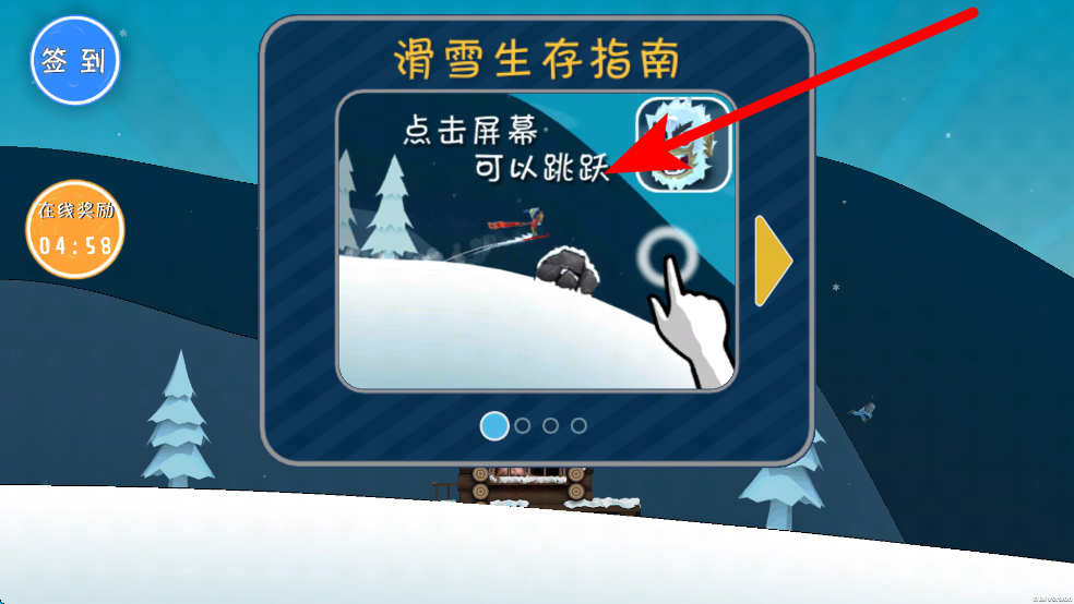 1、游戲開始前,會有操作提示,玩家可通過點擊屏幕讓角色跳躍,利用跳躍來躲避障礙物,或在合適時機進行特技動作,為后續(xù)滑行做好準(zhǔn)備。