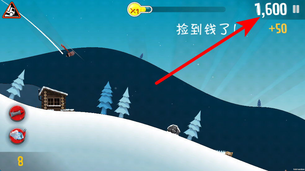 4、在滑行過程中,左下角會有數(shù)值顯示,隨著滑行的持續(xù)和任務(wù)的完成等,該數(shù)值會發(fā)生變化,玩家可通過它了解自身的游玩進度等情況。