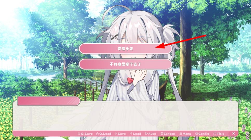 2、選擇著牽著手走選項,可以觸發(fā)對應的劇情的發(fā)展,提升了角色間的親密度。