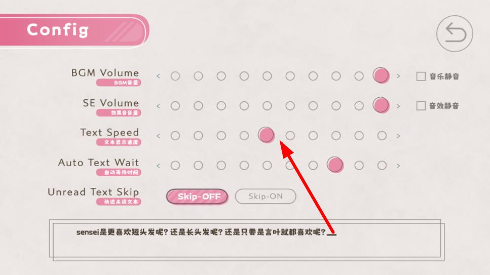 3、調(diào)整Text Speed文本顯示速度的滑塊,控制游戲中文本的顯示節(jié)奏,適應習慣。