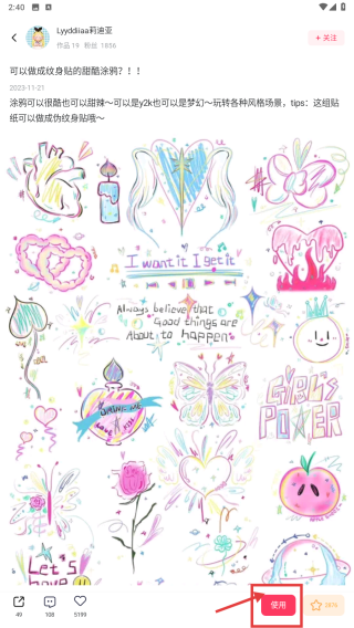 3、在畫廊配方列表中,找到可以做紋身貼紙的涂鴉配方條目,點(diǎn)擊進(jìn)入詳情頁(yè)。