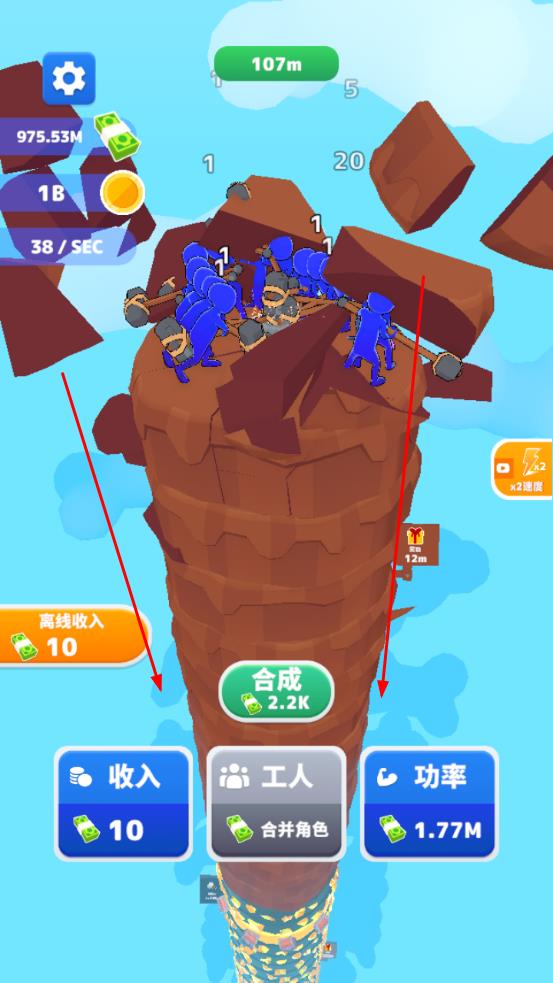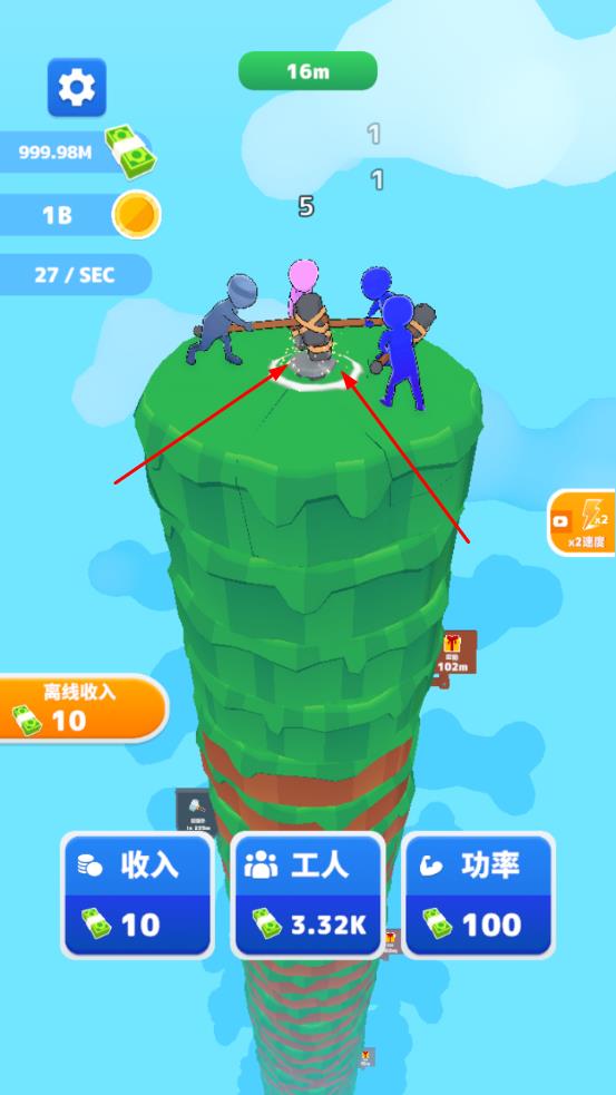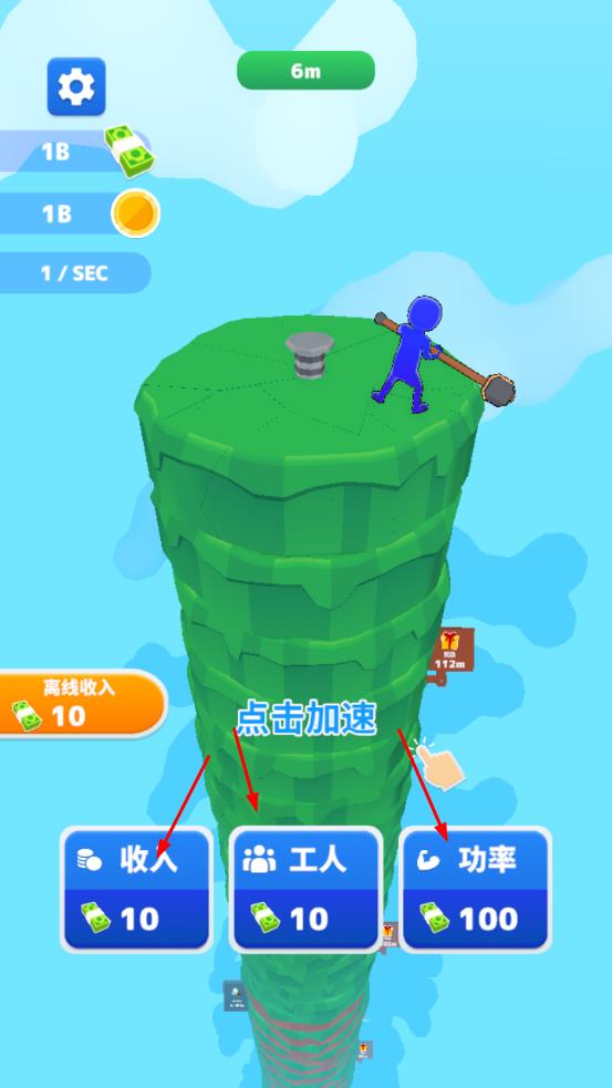 1、可點(diǎn)擊收入、工人、功率等按鈕來(lái)加速進(jìn)程,提升資源獲取和建造效率。
