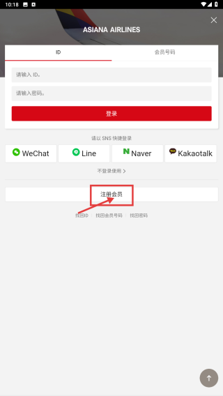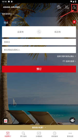 1、打開韓亞航空APP,點擊右上角個人圖標,進入賬號操作界面。