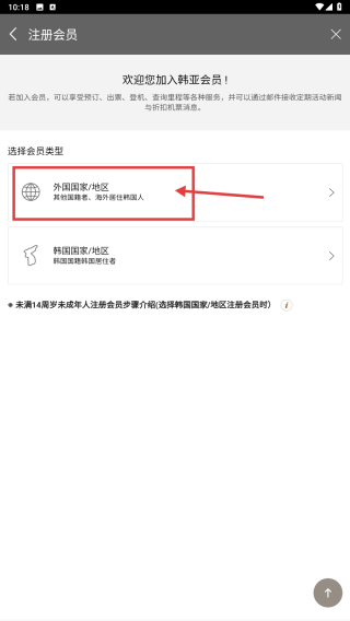 4、在會員注冊界面,選擇外國國家/地區(qū)會員類型,繼續(xù)完成注冊流程。