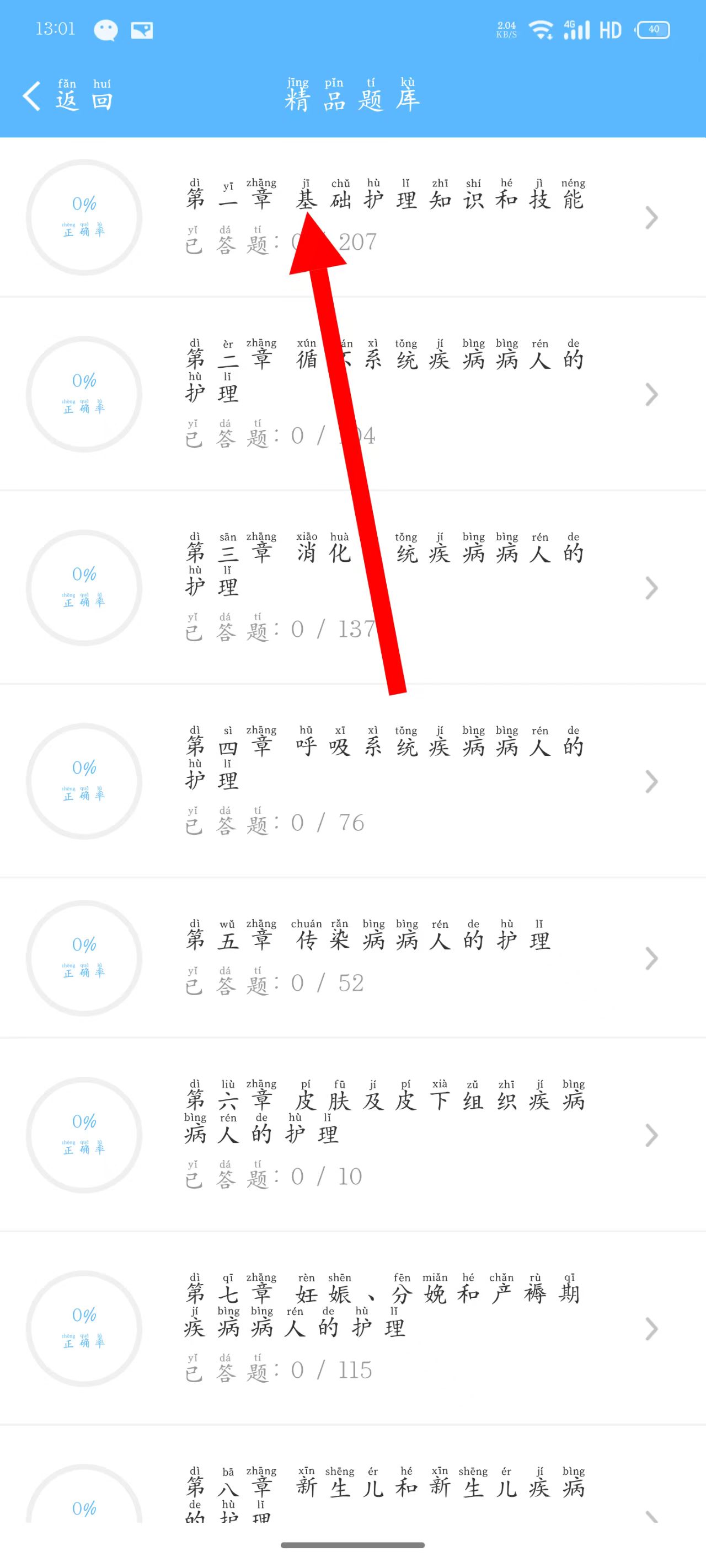 2、在精品題庫頁面,選擇要學(xué)習(xí)的章節(jié)。