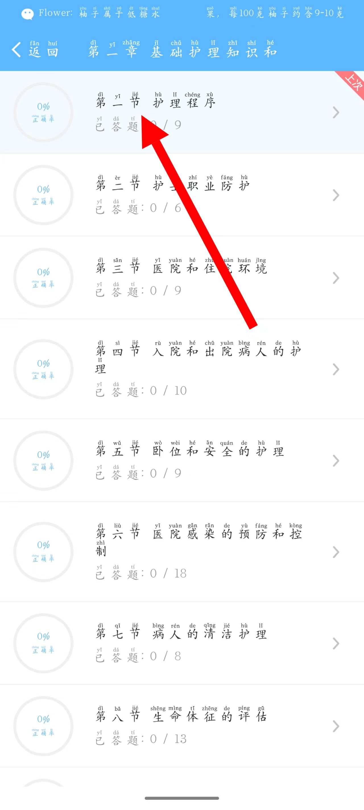 3、進入章節(jié)頁面后,選擇具體小節(jié)。