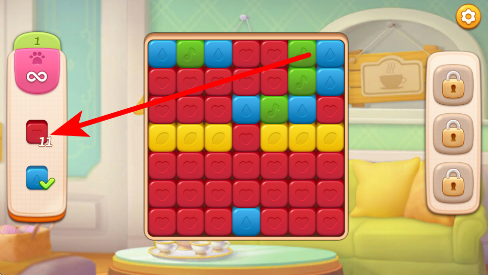 1、先查看需要消除的元素目標(biāo),明確數(shù)量要求,游戲開始后可尋找可消除的相同元素。