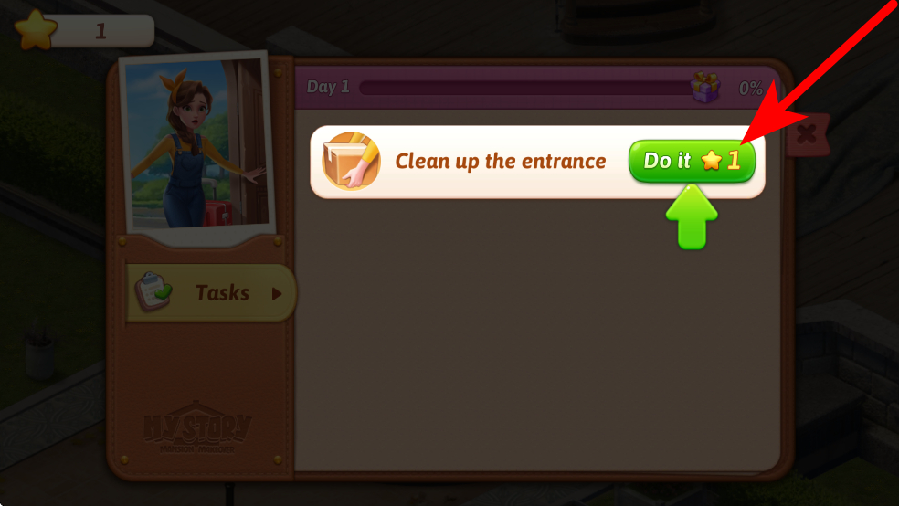 3、獲得星星后,查看家園改造任務(wù),比如清潔入口等,點(diǎn)擊對應(yīng)的操作按鈕,消耗星星來推進(jìn)改造任務(wù)的進(jìn)行。