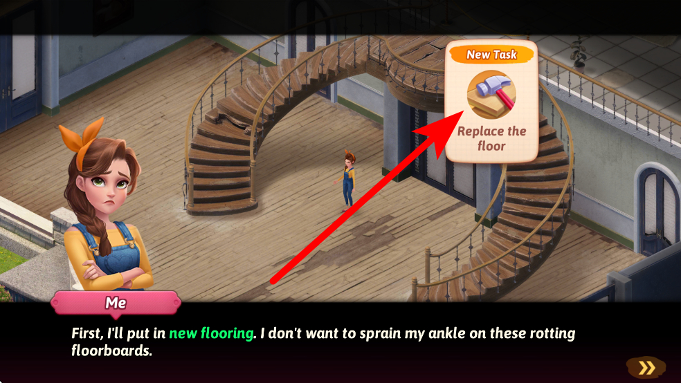 4、完成一項(xiàng)改造任務(wù)后,會(huì)出現(xiàn)新的任務(wù),像更換地板等就需要用錘子等工具改建,繼續(xù)用獲取的星星去完成這些任務(wù),逐步改造家園。